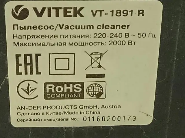Пылесос Vitek VT-1891 (R) Состояние хорошее, рабочее, пости не пол #40918