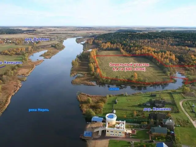 Предлагаются к продаже 2-а земельных участка в деревне Капшино Нерльского сельского поселения Калязинского района Тверской области общей площадью 6,4 га (560+80 соток). К № 69:11:0000020:1921, К № 69:11:0000020:401. Категория земель – земли населенных пунктов. Вид разрешенного использования – для передачи в аренду или распоряжения иным способом, для иных видов сельскохозяйственного использования (разрешенное использование легко меняется на «жилищное строительство»). Цена - 20 000 000 рублей (разумный торг). Продается как единый массив. Очень красивые места. Собственная береговая линия длиной 200 м. залива реки Нерль. Пологий берег. Дно песчаное. Ширина залива 30 метров, ширина реки Нерль 100 м. Большая деревня. Есть магазин, медпункт, церковь. Электричество проходит по границе участка. Возможность подключения есть. Река, леса, поля. Рыбалка, охота. До реки Волга (Угличское водохранилище) – 11 км. по реке Нерль. Рядом Скнятинское охотничье хозяйство, лодочная станция и рыбохозяйство. До гор. Калязина 36,0 км., до МКАД 180 км. Приятное место для коттеджного поселка, базы отдыха (аренда домов), Охото-Рыболовной базы и т.д.